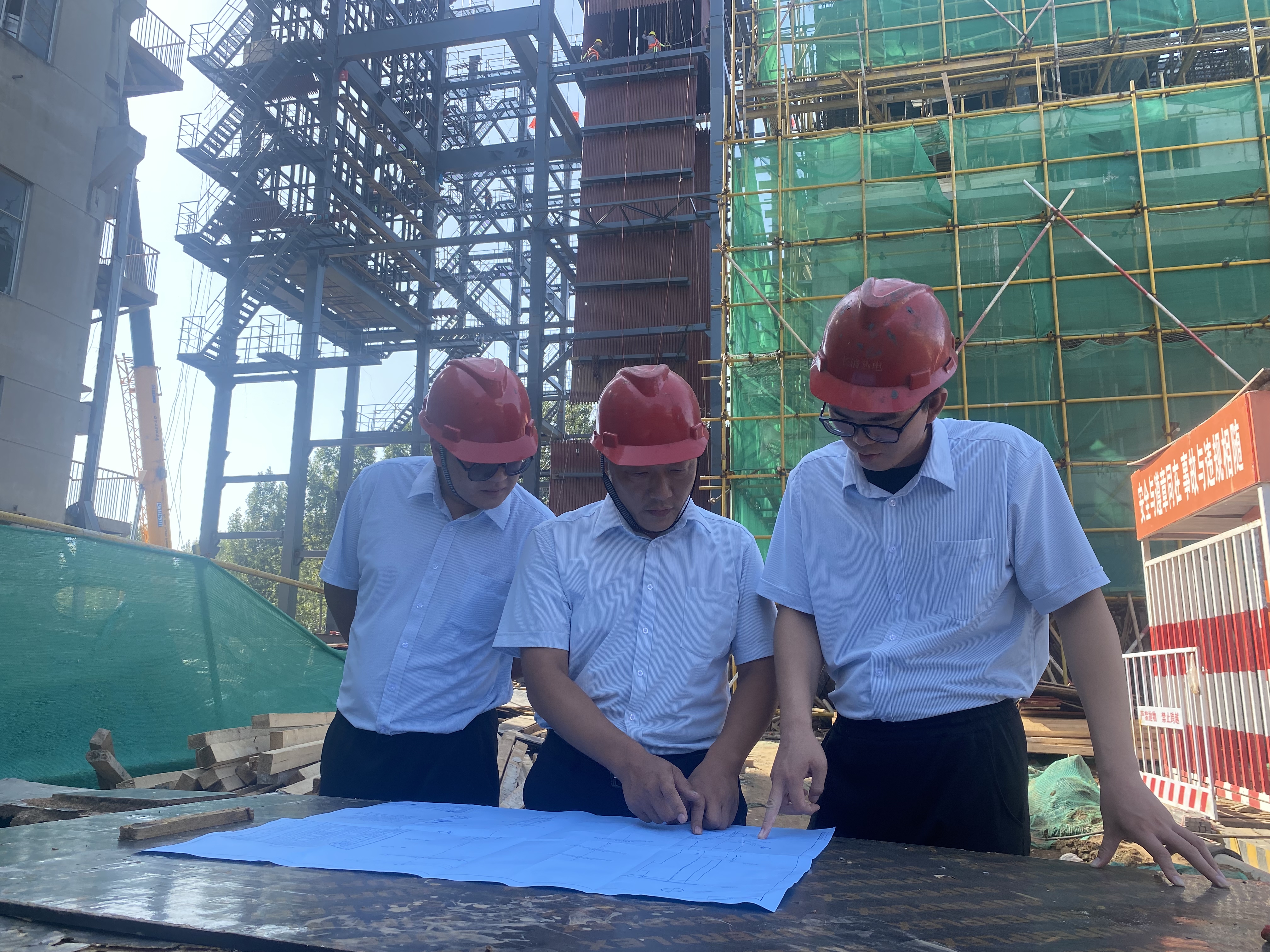 在施工现场,锅炉车间主任褚虎正在钢架吊装现场组织相关班组长研究安全防护事宜。作为济南长清热电有限公司驻工地代表,褚虎承担着巨大的工期压力,按照能源集团统一调度安排,11月初,供热锅炉要具备供热条件,这是集团实施供热“一张网”后确定的重要节点,各供热公司都要严格执行甚至提前达到的重要安排,作为并入能源集团后面临的首考,长清热电自然要给市民交上一份满意的答卷,看着褚虎坚定而又严肃的表态,脑海中浮现出项目建成后锅炉运行时的场景。