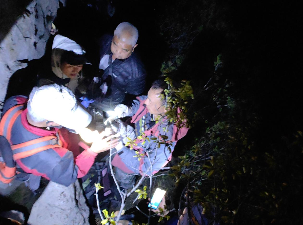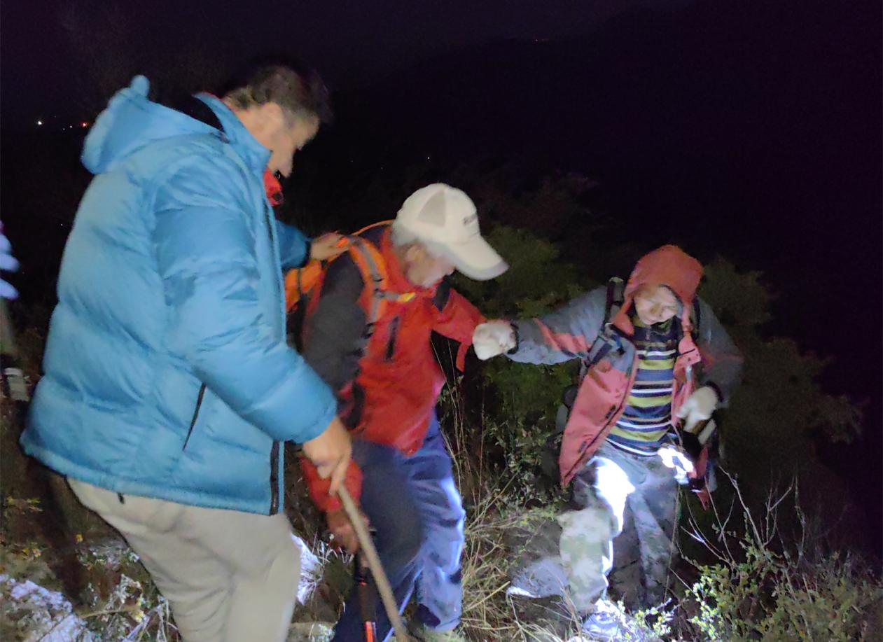 看到这一消息,赵华生第一时间在群里作出了救援回复。他匆匆起床穿衣,一边通过微信稳定被困老人情绪,一边紧张地准备着登山杖、医疗包、手电筒、安全背带等救援工具。受到赵华生的感染,群里的多位网友也提出同往救援。在赵华生的组织下,一支7人救援队很快便在夜色中出发了。
