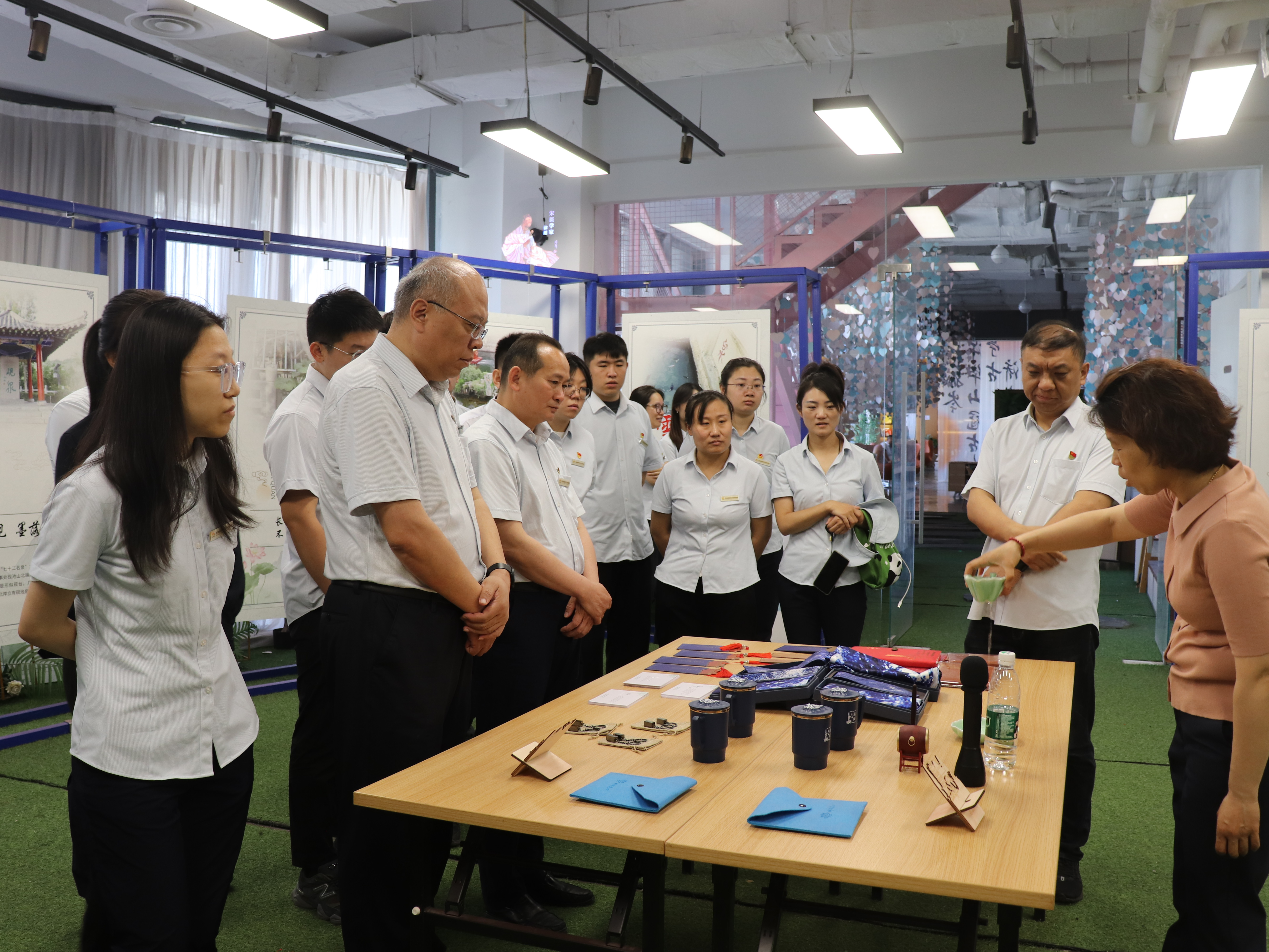 在“廉洁文创展示区”,讲解员手持一只荷叶状的杯子,耐心地讲解其中的典故,“此杯名叫‘碧筒饮’,倒水只能倒八分满,多倒一分就会全部漏光,寓意‘小满为盈,大满为亏’的道理,谦受益、满招损,告诫我们要谦虚谨慎,做人要知足常乐。”党员们纷纷感慨,此次活动地开展,让“清廉”看得懂、听得进、记得牢,是一次深刻地思想淬炼和精神洗礼。