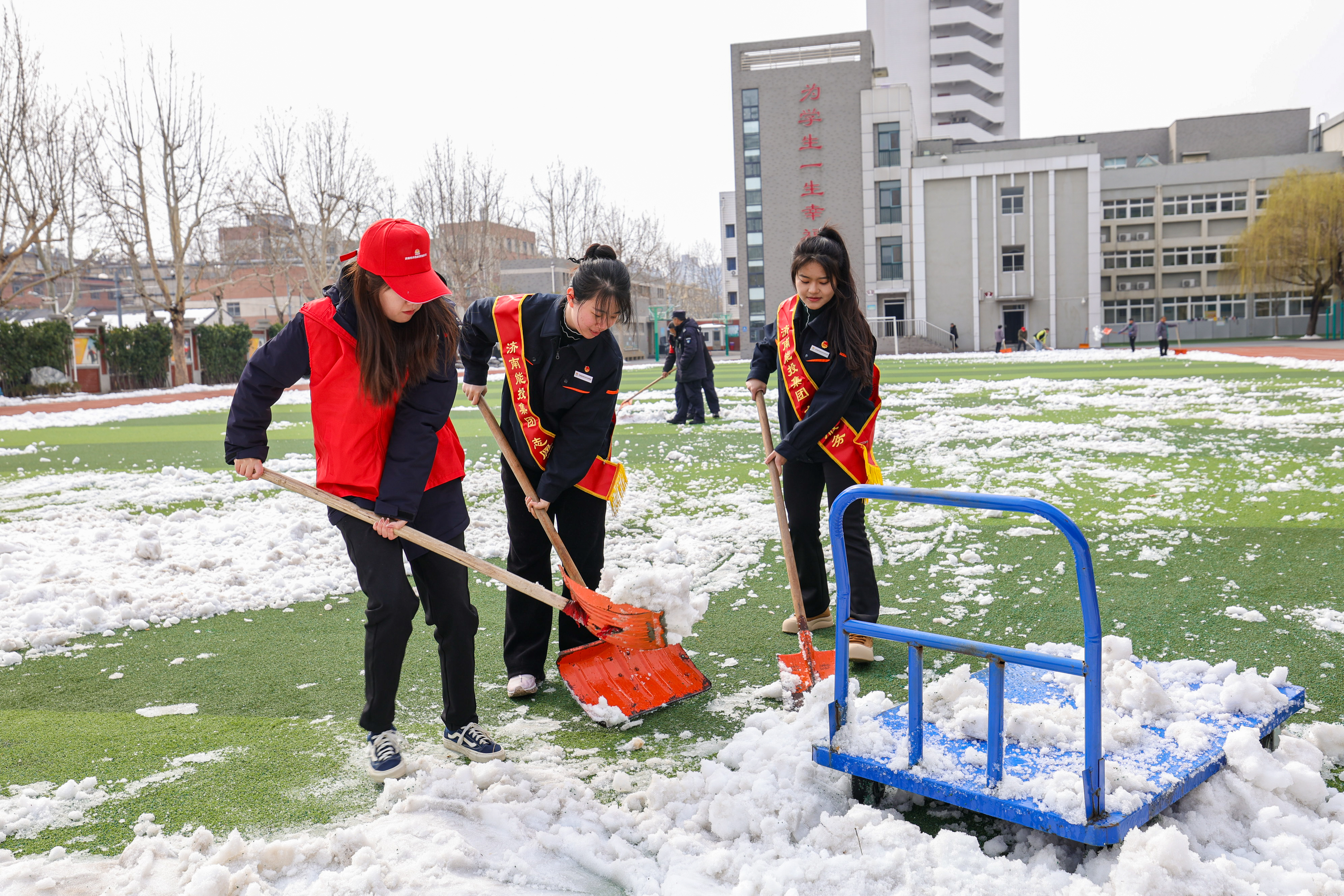为倡导安全出行理念,志愿者们还加入了校园扫雪和交通引导的行动中,他们身着醒目的红色马甲,协助工作人员清扫校园及道路周边积雪,共同维护交通秩序,为学生们出行提供安全保障。红灯亮起时,志愿者及时示意行人停下脚步;绿灯亮起,他们又引导行人快速有序地通过斑马线。对于一些不遵守交通规则的行为,如行人闯红灯、电动车逆行等,志愿者会礼貌地进行劝阻,并耐心讲解交通规则和安全知识。