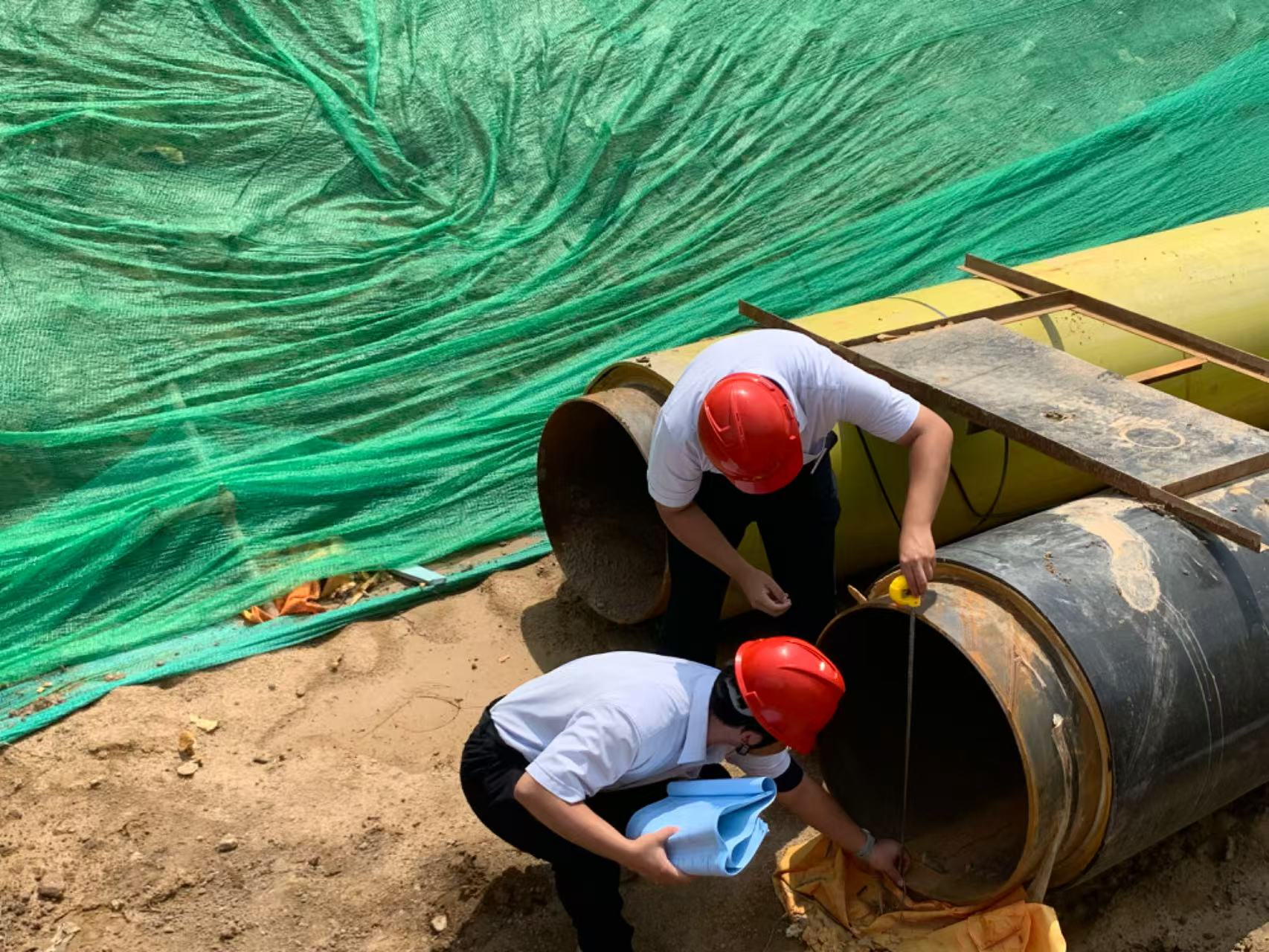 清晨五点,最后一根测漏光纤铺设完毕,他及时将按时完成任务的消息发送给土建方,告知可进行回填。此刻,他胸前的党员徽章在初升的阳光下折射出金色光芒,与施工现场的安全帽、警示带交相辉映,将“3.7克”的信仰重量镀上一层温暖的光晕。