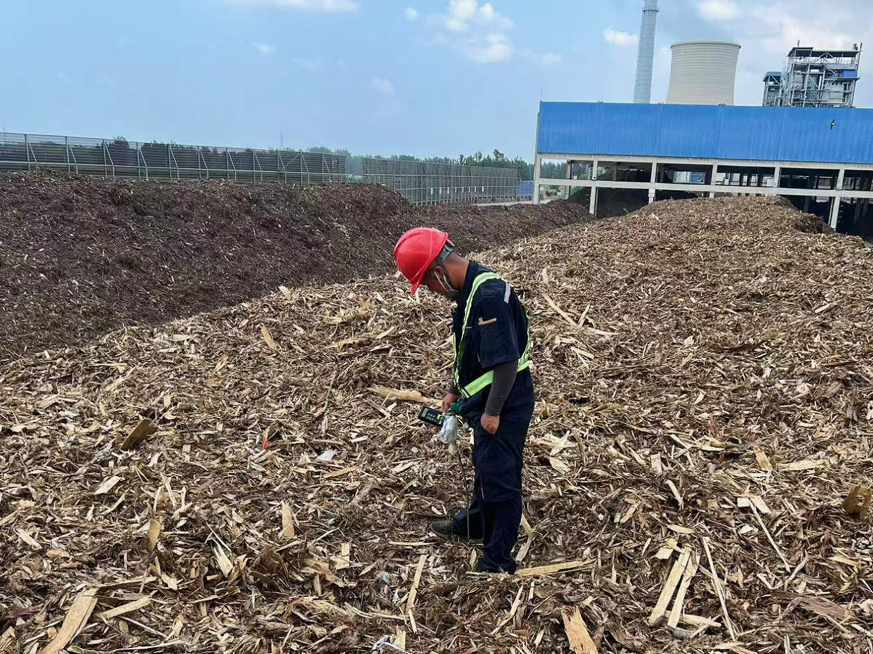 定时进行料垛测温,防止高温引发自燃风险也是质检团队的重要工作之一。工作人员手持长柄测温仪,爬上数米高的料垛,仔细记录温度数据。一旦发现异常便立即上报并采取降温措施,确保料场安全。