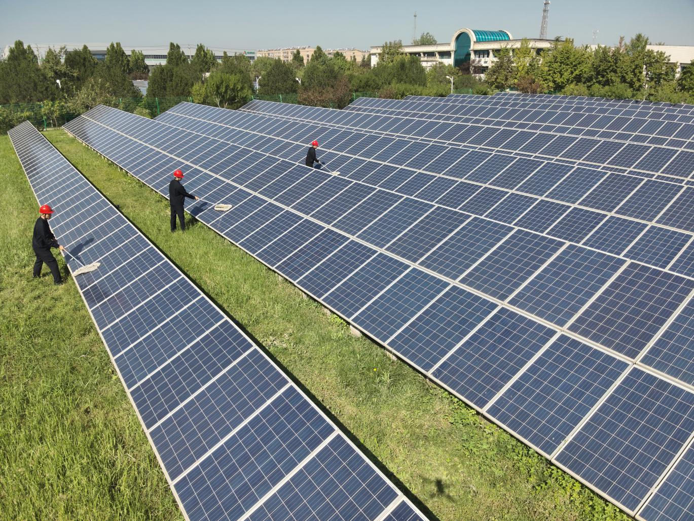 “太阳升起时,我们就要到岗。”在开云登录口网页版集团所属济莱新能源有限公司光伏电站,运维人员一边擦拭光伏组件一边向记者说道。双节期间,该公司 53 座光伏电站的运维人员全员坚守,保障着总装机容量 103MW 电站的稳定运行。